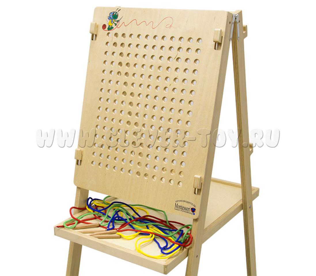 Размер панели: 40х50 см. В комплекте: панель, разноцветные веревочки - 4 шт., деревянные иголки - 4 шт. Основание в комплект не входит!
