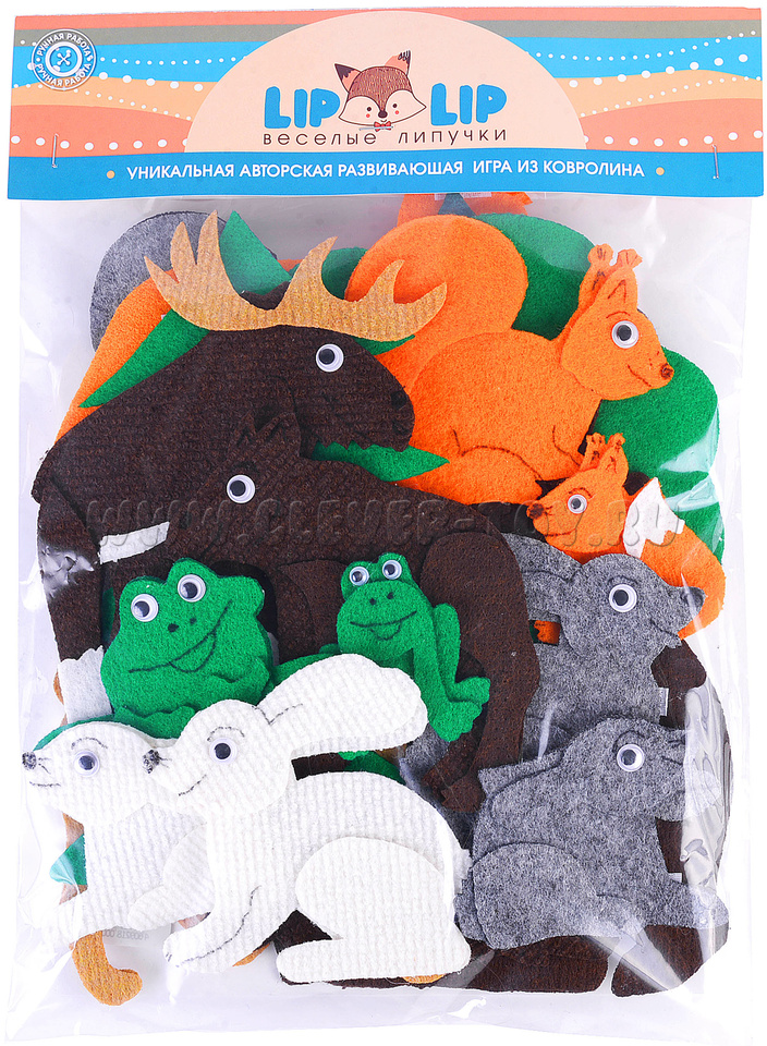 Набор "Дикие животные" - это ещё и динамический театр на плоскости! Вы и ваш малыш сможете придумать и поставить свой первый спектакль с участием ковролиновых героев, дать им разный голос и характер, разыграть с их помощью любимые сказки.