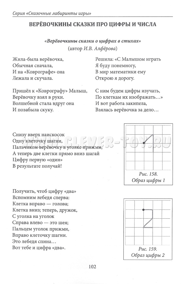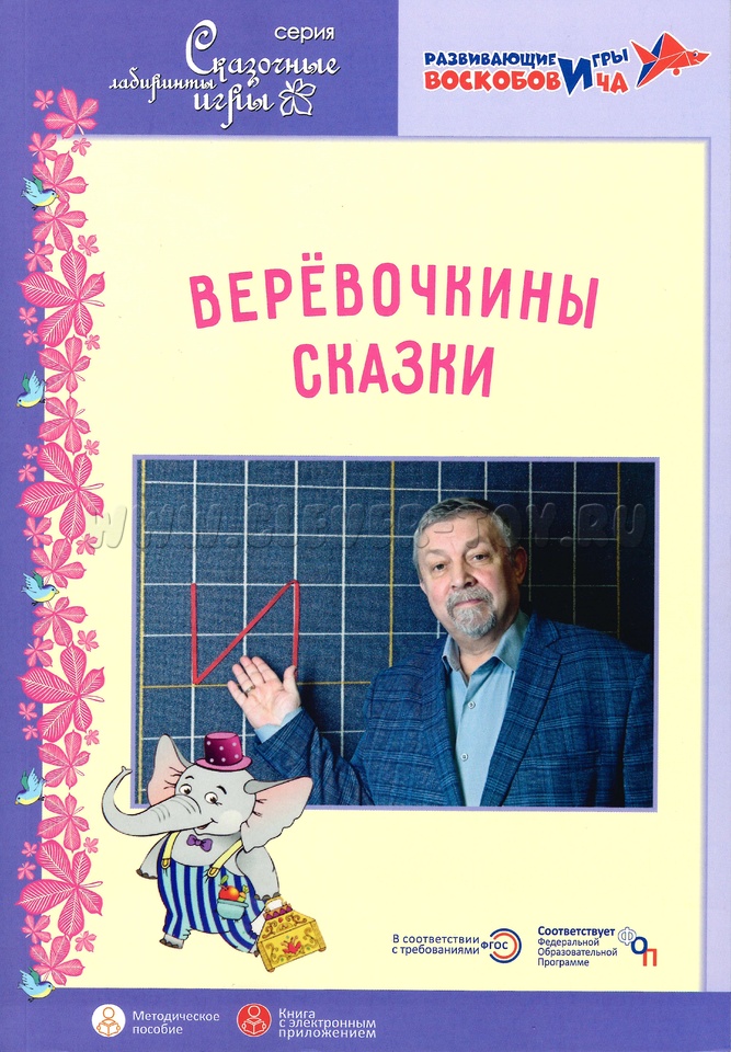 В методическом пособии "Верёвочкины сказки" представлены авторские сказки и стихи, которые помогут педагогам и родителям сформировать у детей представления о буквах и цифрах на основе технологии интеллектуально-творческого развития детей дошкольного и младшего школьного возраста В. Воскобовича «Сказочные лабиринты игры». Сказки могут использоваться на занятии и для закрепления знаний детей в повседневной жизни.