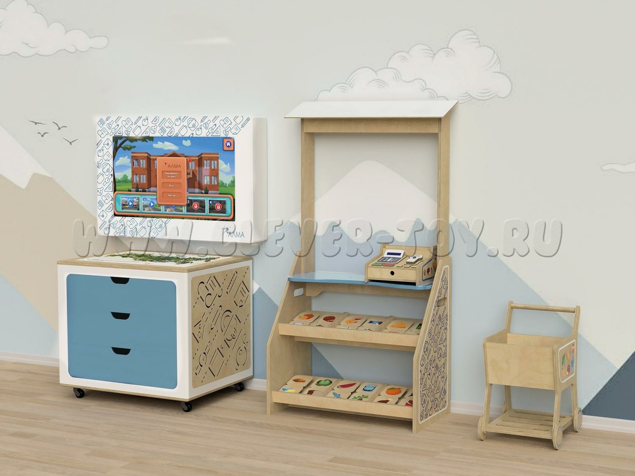 Интерактивный комплекс для детских садов и дошкольных учреждений, который в игровой форме знакомит детей со знаниями в таких сферах, как: финансовая грамотность, экология, ПДД, космос и общие дошкольные знания. Развивает логическое мышление, воображение, концентрацию внимания и память.