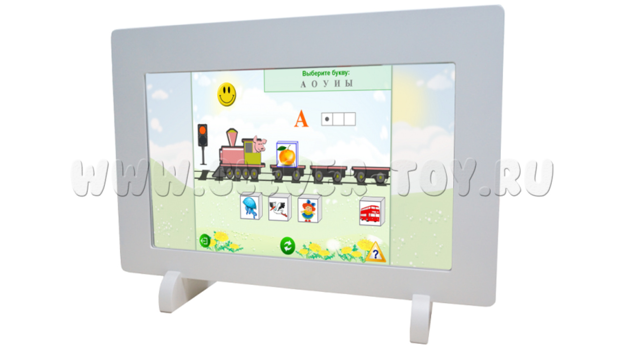 Это уникальное оборудование, в отличие от имеющихся в данный момент на рынке моделей, имеет антивандальный монитор (диагональю 24 дюйма) с сенсорной поверхностью, которая дает возможность ребенку самому производить действия с помощью прикосновений к экрану, уроки при этом получаются гораздо интереснее и ярче, а значит, ученики лучше воспринимают информацию.