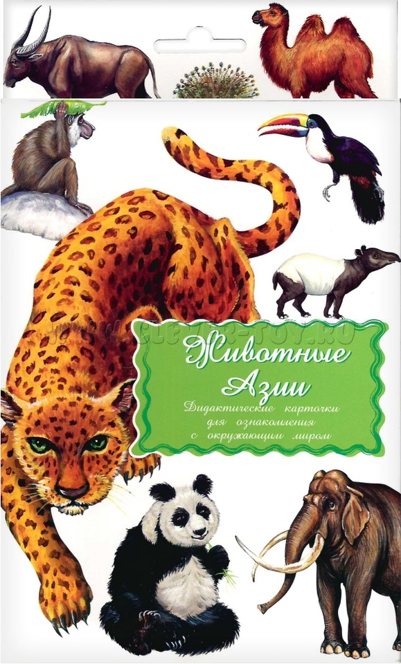 В набор водит 16 карточек с изображениями животных, обитающих в Азии: