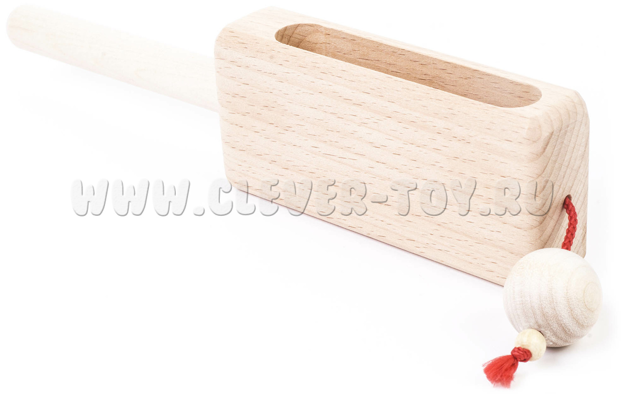 Колотушка представляет собой деревянный брус 30х50х115 мм. На верхней торцевой части бруса на капроновом шнуре крепится деревянный шарик диаметром 25 мм.