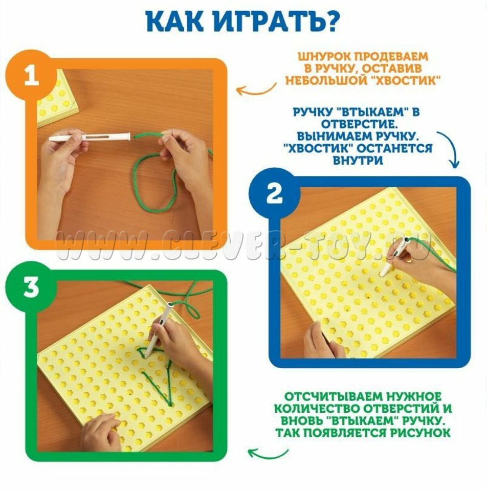 Набор "Ровные строчки" - необычный способ развивать зрительно-моторную координацию с помощью "вышивания" цветными шнурками по специальной доске. В игре ребенок учится подсчитывать и структурировать рисунок. Такое "вышивание" развивает внимание, усидчивость и сосредоточенность.