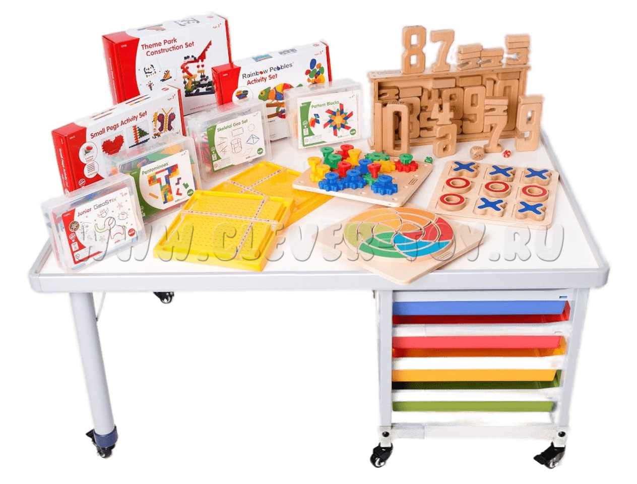 4. Удобная система хранения материалов - выдвижные ящики разного объема, которые легко могут использоваться детьми самостоятельно.